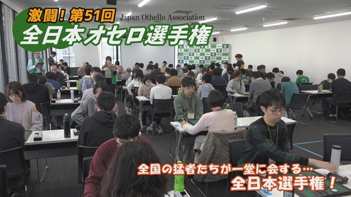 日本最高峰のオセロプレイヤーたちが一堂に会する「第51回 全日本オセロ選手権」の 大会の模様と決勝の対局を臨場感たっぷりにお届けします。